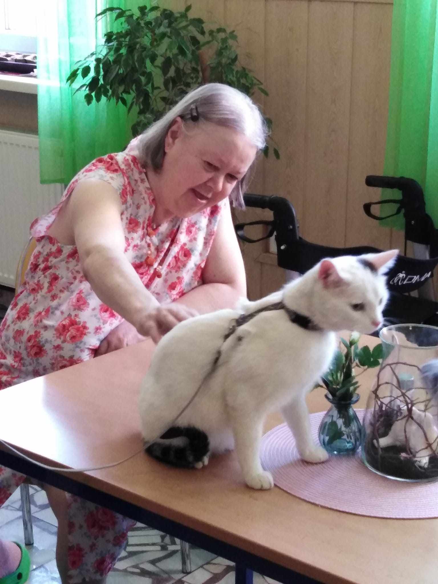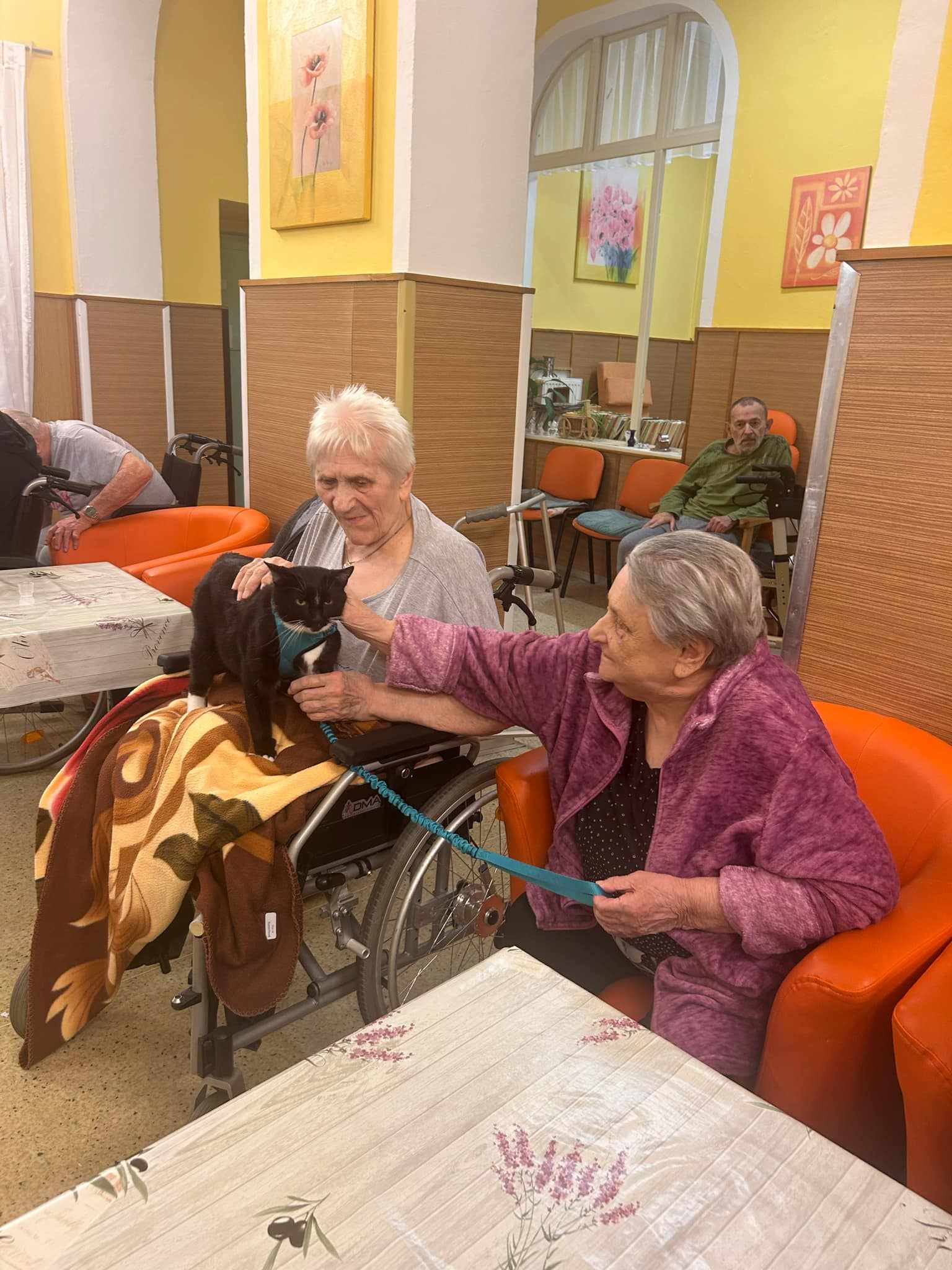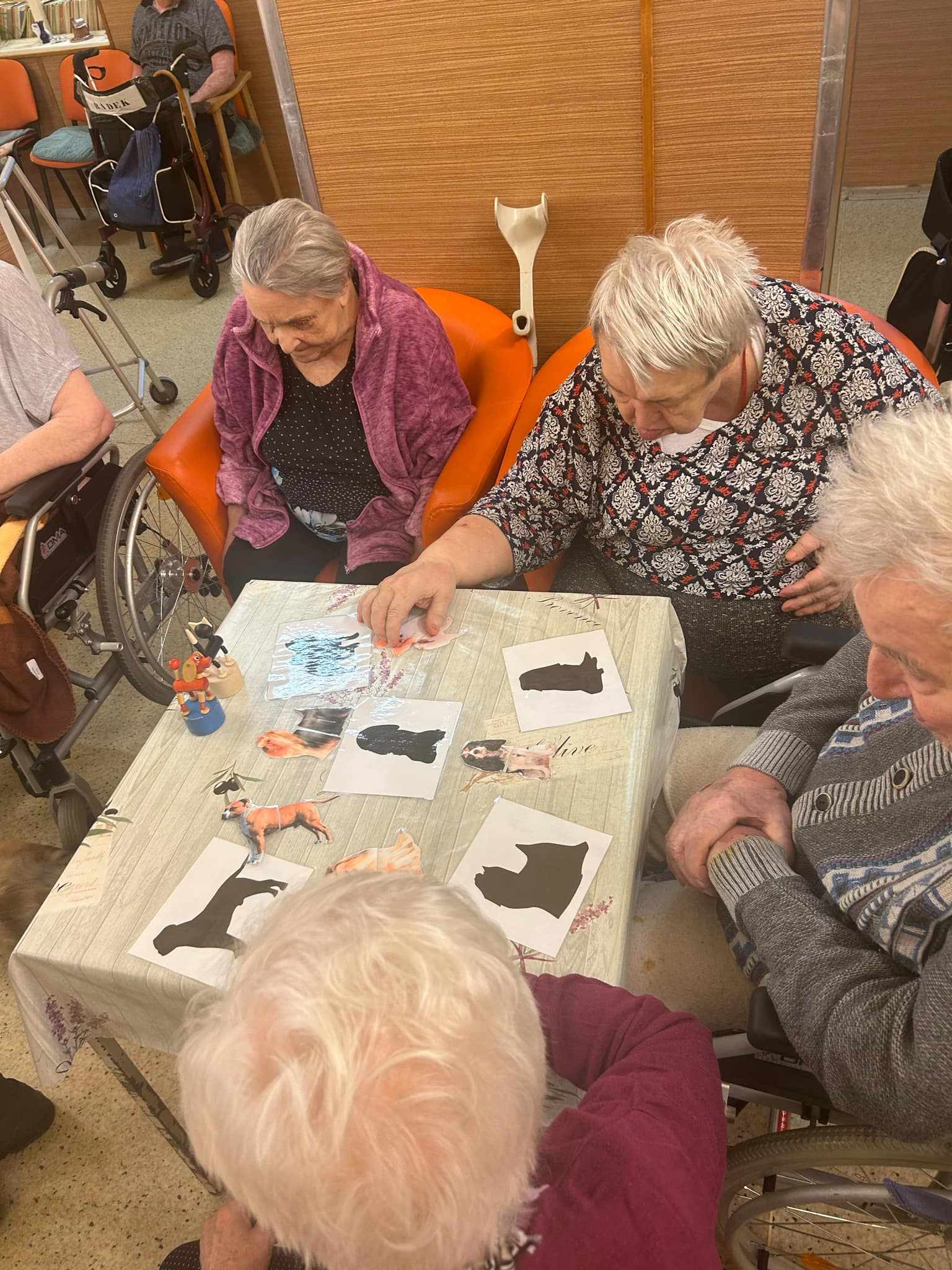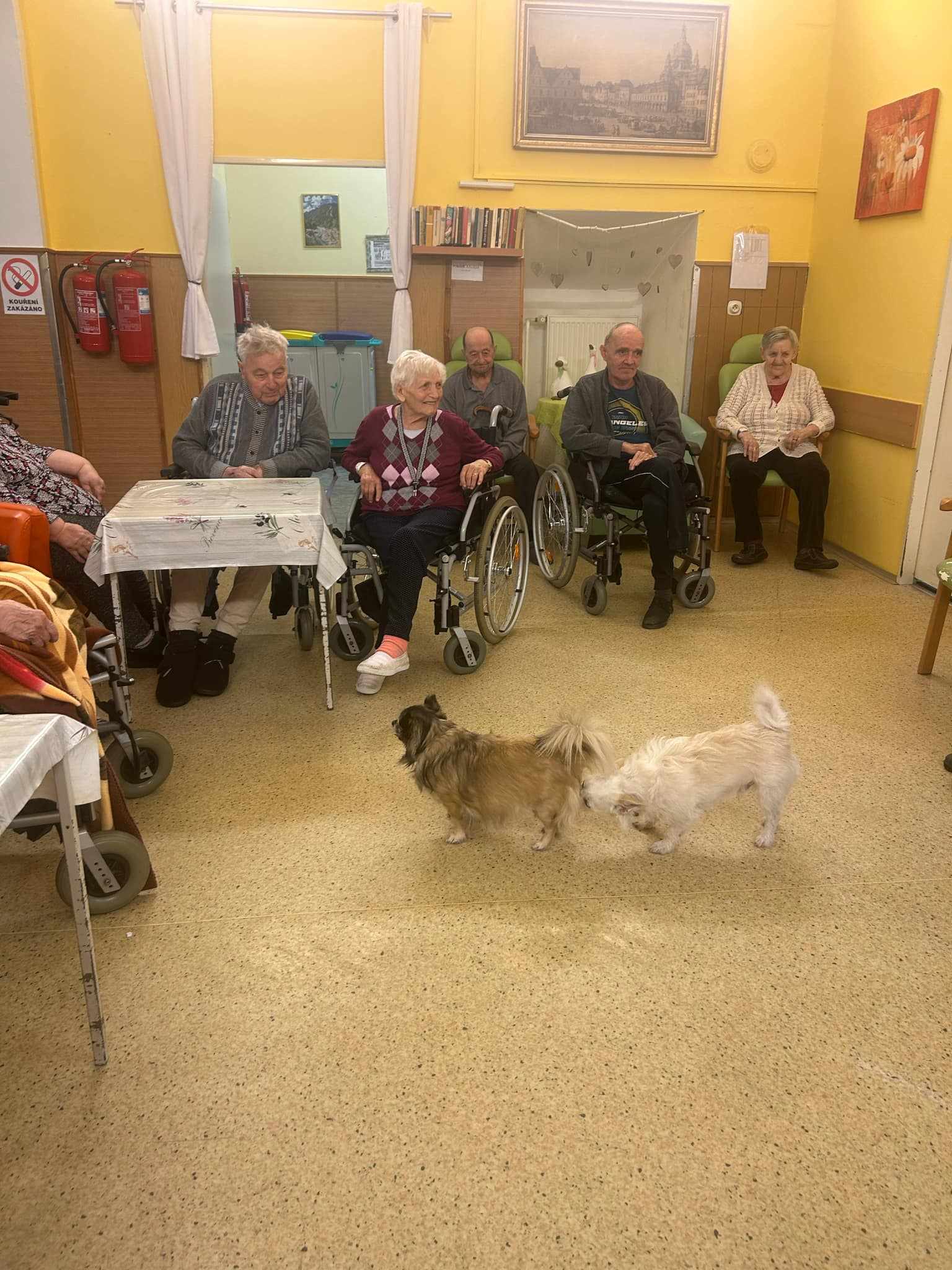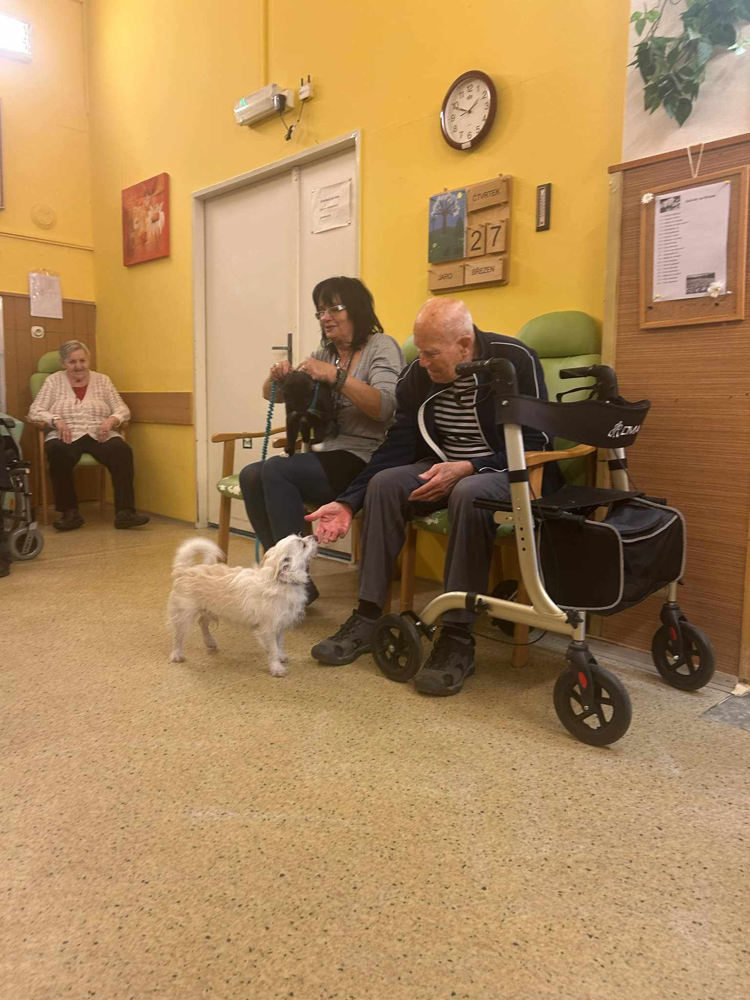 Dne 23. 3. na B2 a 27. 3. na B3 proběhla canis- a felinoterapie. Uživatelky a uživatele navštívila canisterapeutka se svými dvěma pejsky a také kocourem. Aktivita se konala ve skupině, následně canisterapeutka navštívila se zvířátky některé uživatele i na pokojích. Uživatelé měli možnost si psy i kocoura pohladit, dát jim pamlsek nebo jim házet hračky. Také plnili různé úkoly na trénování postřehu a paměti. Uživatelé si aktivitu velmi užili.