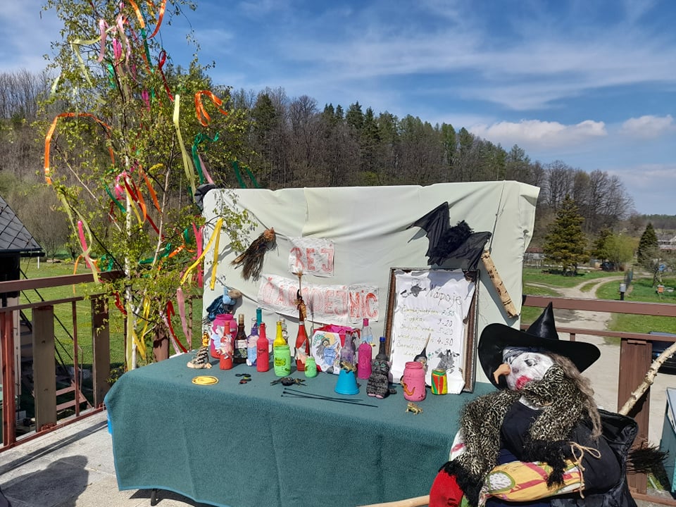 Na malé budově uživatelky s pracovnicemi slavily den pálení čarodějnic a stavění májky 29. dubna. Podle svého zájmu se převlékly do čarodějnických šatů a sešly se v hojném počtu na terase, kde si mohly užít krásné slunečné počasí. Pro uživatelky bylo nachystáno bohaté občerstvení v podobě chlebíčků, dezertu, kávy a čaje. Během posezení si uživatelky s pracovnicemi připomněly tradici filipojakubské noci a zdobení májky. Uživatelky zavzpomínaly na svoje mládí a živě diskutovaly o tom, jak tradici čarodějnic slavily. Poté společně ozdobily připravenou májku barevnými stuhami. Každá z uživatelek se snažila zapojit a uvázat svou stuhu. Ozdobenou májku pracovnice na terase za velkého potlesku postavily. Všechny zúčastněné si akci užily, byly moc spokojené.