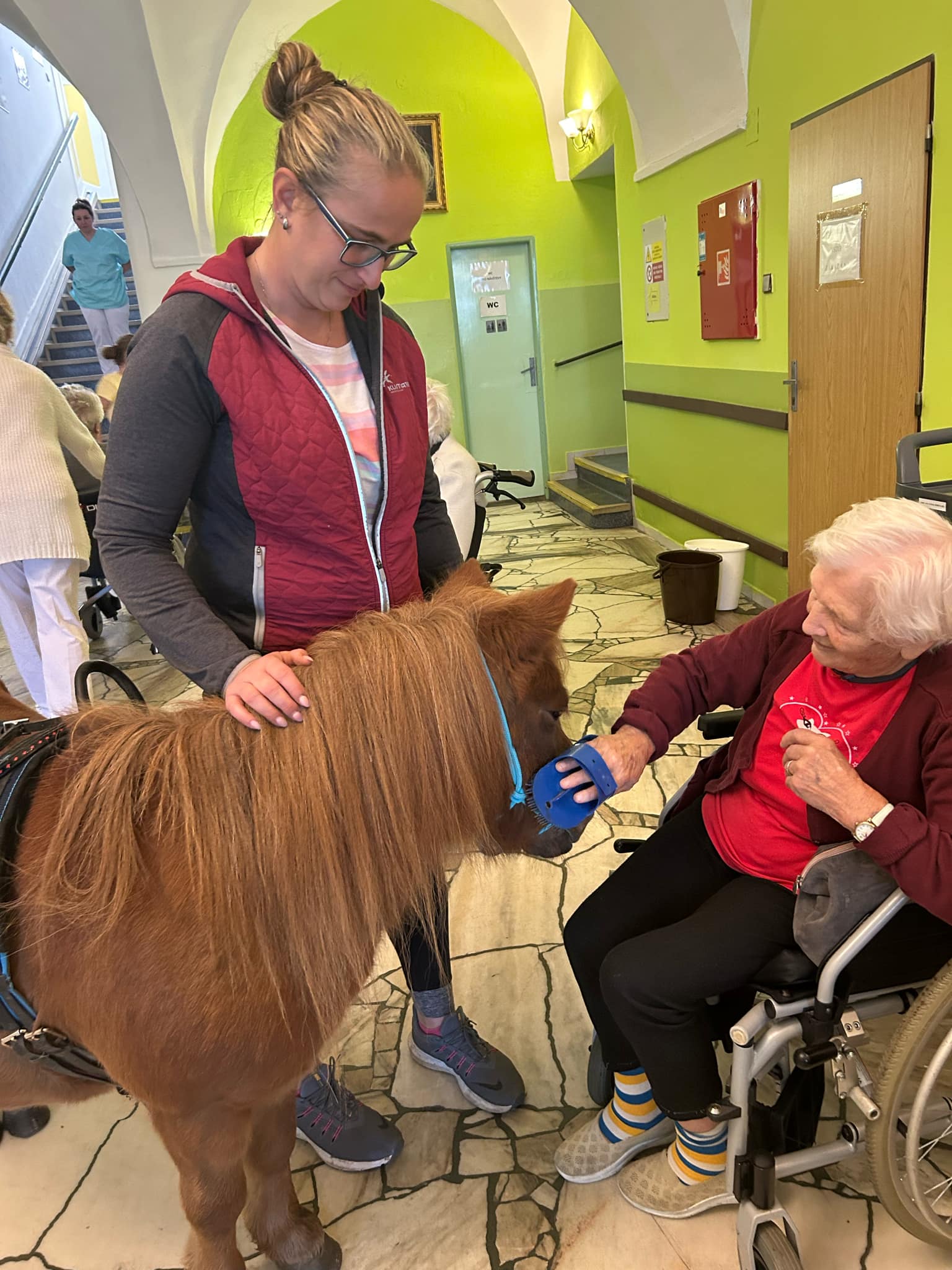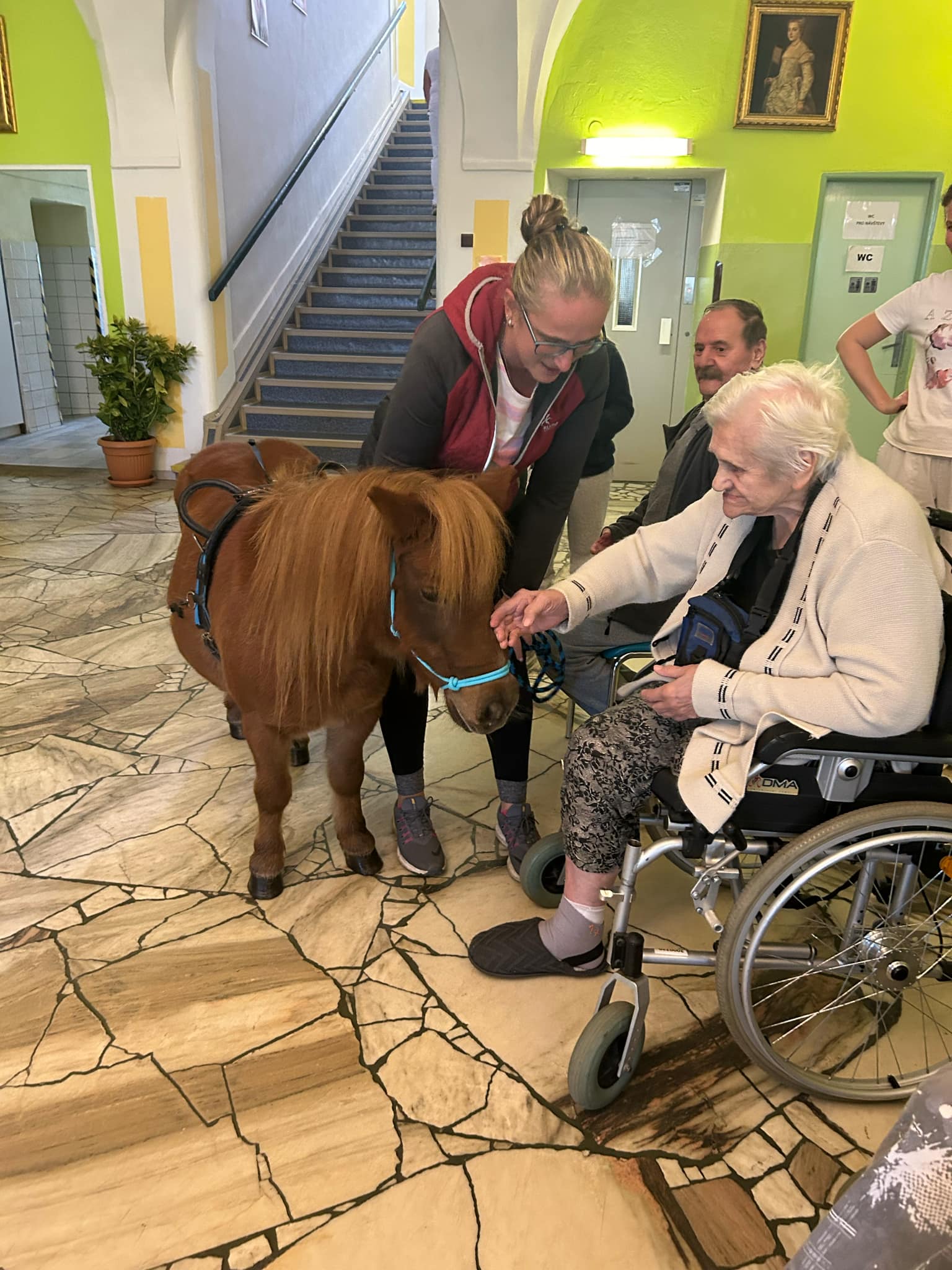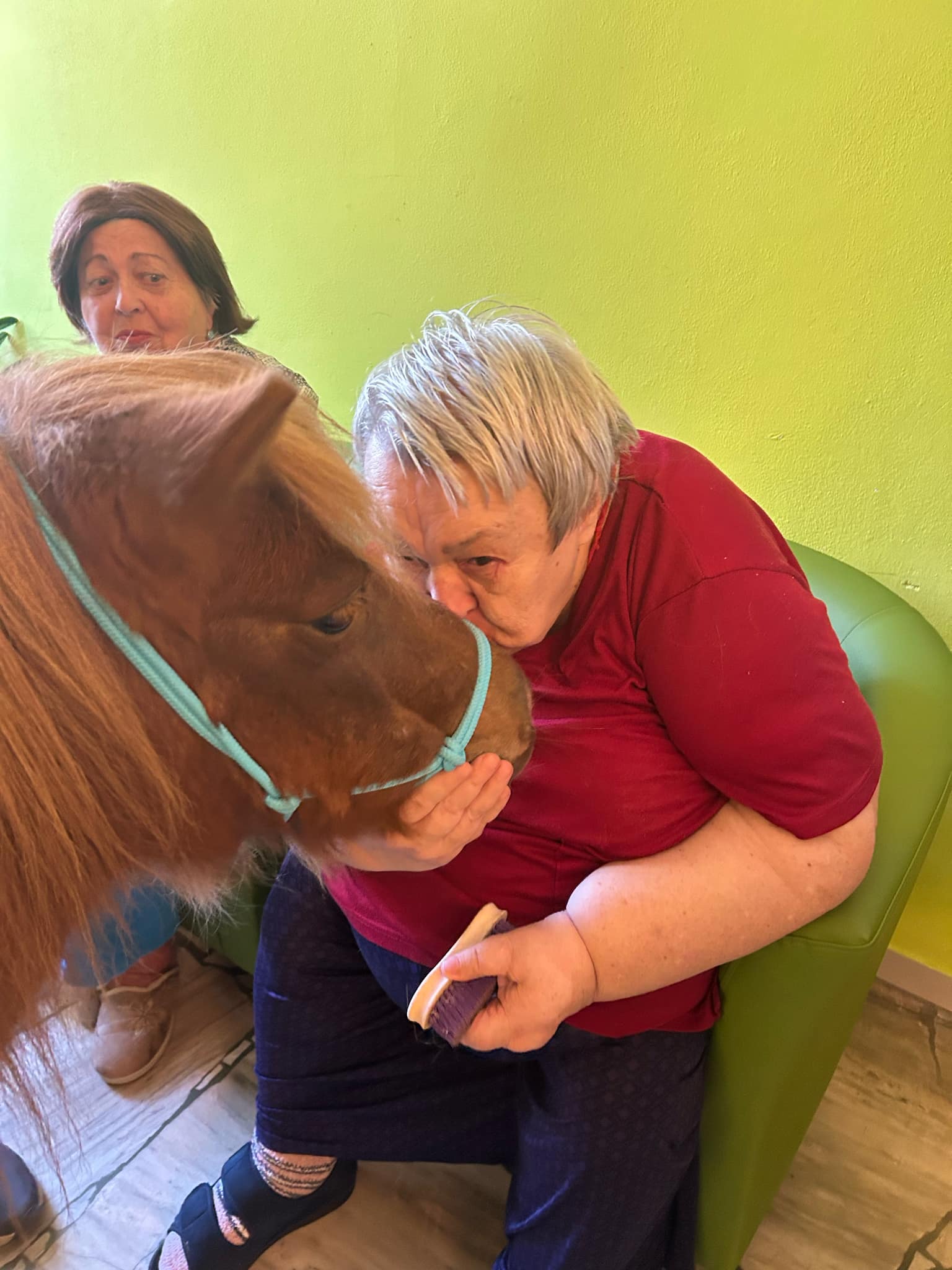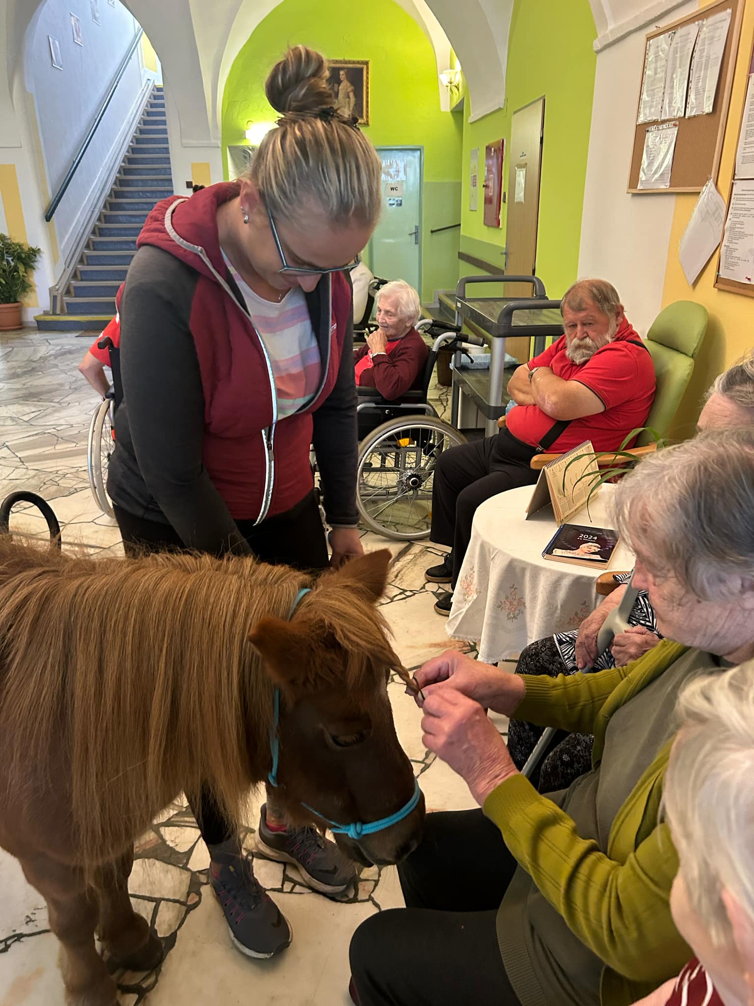Ve dnech 8. 8. a 12. 8. 2024 proběhla na budovách B3 a B2 hipoterapie. Chovatelka procházela mezi uživateli s koníkem, u každého uživatele či uživatelky se zastavila, aby si ho mohli prohlédnout a pohladit. Uživatelé měli také možnost česat mu hřívu, uplést mu následně copánky, dát mu kousek jablíčka. Uživatelé byli s návštěvou velmi spokojení a těší se na další shledání.