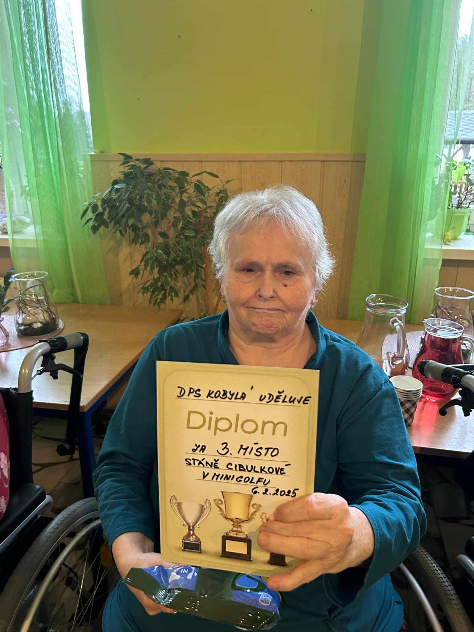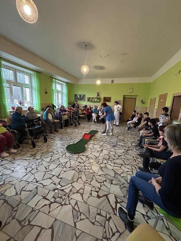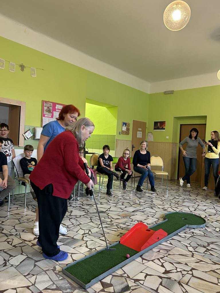 Dne 6. 2. 2025 jsme v jídelně v přízemí uspořádali soutěž v minigolfu. Zúčastnily se uživatelky z budovy B2 a B3 a děti ze Základní školy Kobylá nad Vidnavkou. Sociální pracovnice zahájila soutěž a pak se vše velmi rychle rozjelo. Ve hře se střídaly postupně dvě uživatelky a dvě děti. Každý hráč či hráčka se snažili, aby se míček dostal do důlku na co nejmenší počet strků. Takto se postupně všichni vystřídali a čas velmi rychle ubíhal. Soutěžilo se ve dvou kategoriích, senioři a děti. První tři místa byla odměněna diplomem a malou pozorností. Zúčastnění si sportovní odpoledne užili a těší se na další setkání.