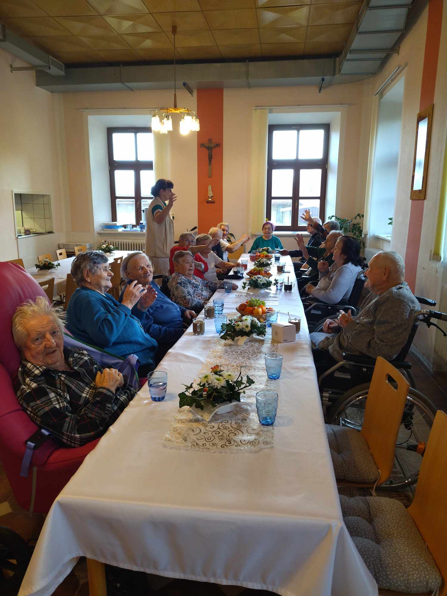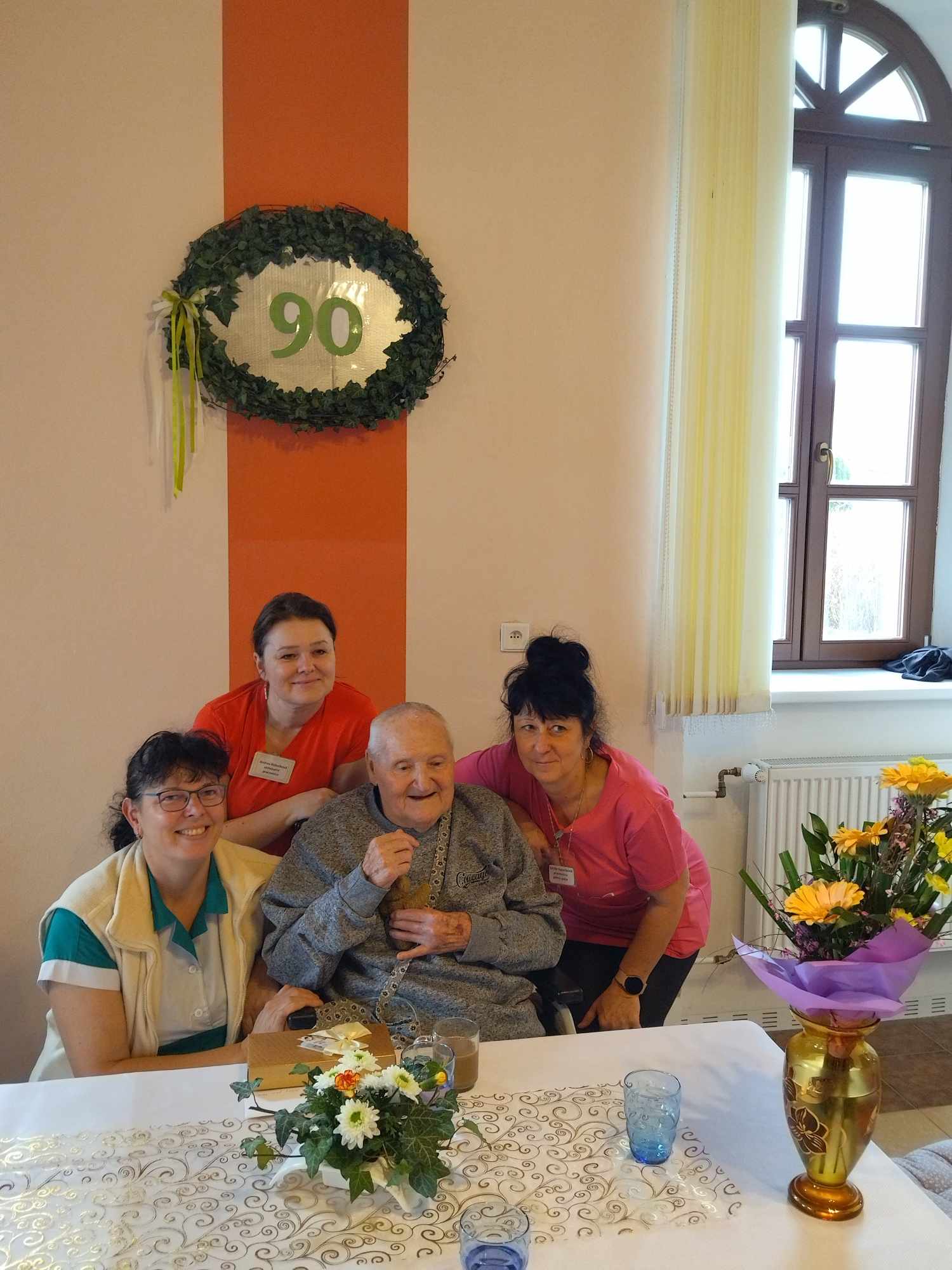 Dne 20. 1. připravili zaměstnanci v jídelně v přízemí posezení pro pana Mertu, který slavil 90. narozeniny. Jeho rodina přivezla jako občerstvení krásný dort a chlebíčky. Pouštěli jsme lidové písničky, z nichž na některé jsme si společně zatancovali i s oslavencem. V průběhu posezení přišly v doprovodu paní učitelky děti ze školní družiny, aby panu Mertovi a dodatečně také paní Juřenové popřály vše nejlepší k narozeninám. Pan Merta si oslavu velmi užíval, strávil příjemný čas se svou rodinou a ostatními uživateli.