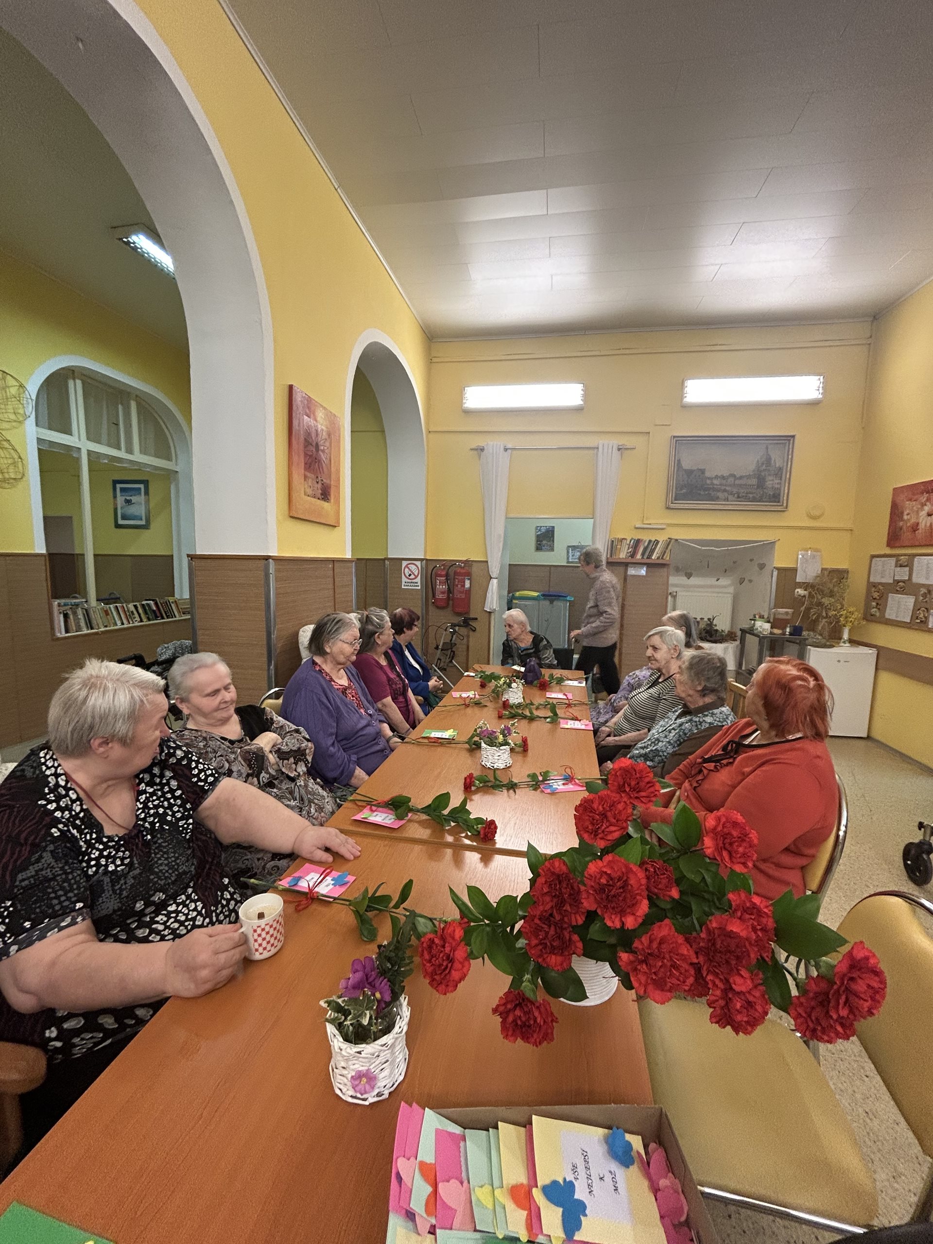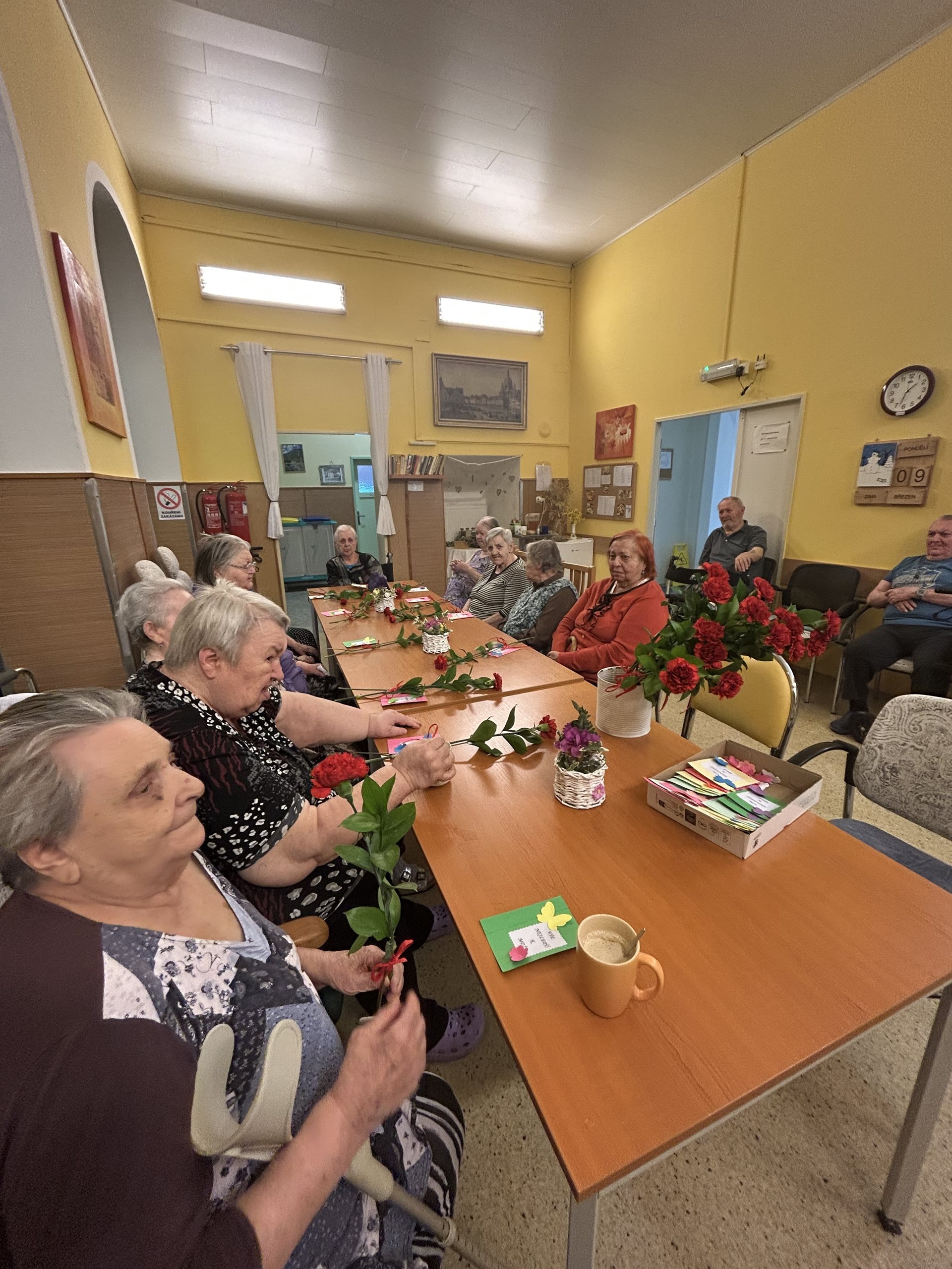 V rámci oslavy MDŽ na obou budovách zaměstnanci pro uživatele připravili pěkné akce. V Javorníku zaměstnanci nejdříve rozdali všem uživatelkám karafiáty a popřáli jim. Poté se uživatelky a uživatelé, kteří měli zájem, přemístili do jídelny v přízemí, kde vystoupily děti ze sboru Sluníčko. Pod vedením paní učitelky Petřekové zazpívaly spoustu krásných písní. Někteří uživatelé se ke zpěvu také přidali. Panovala velmi pozitivní atmosféra, zúčastnění odcházeli nadšení.