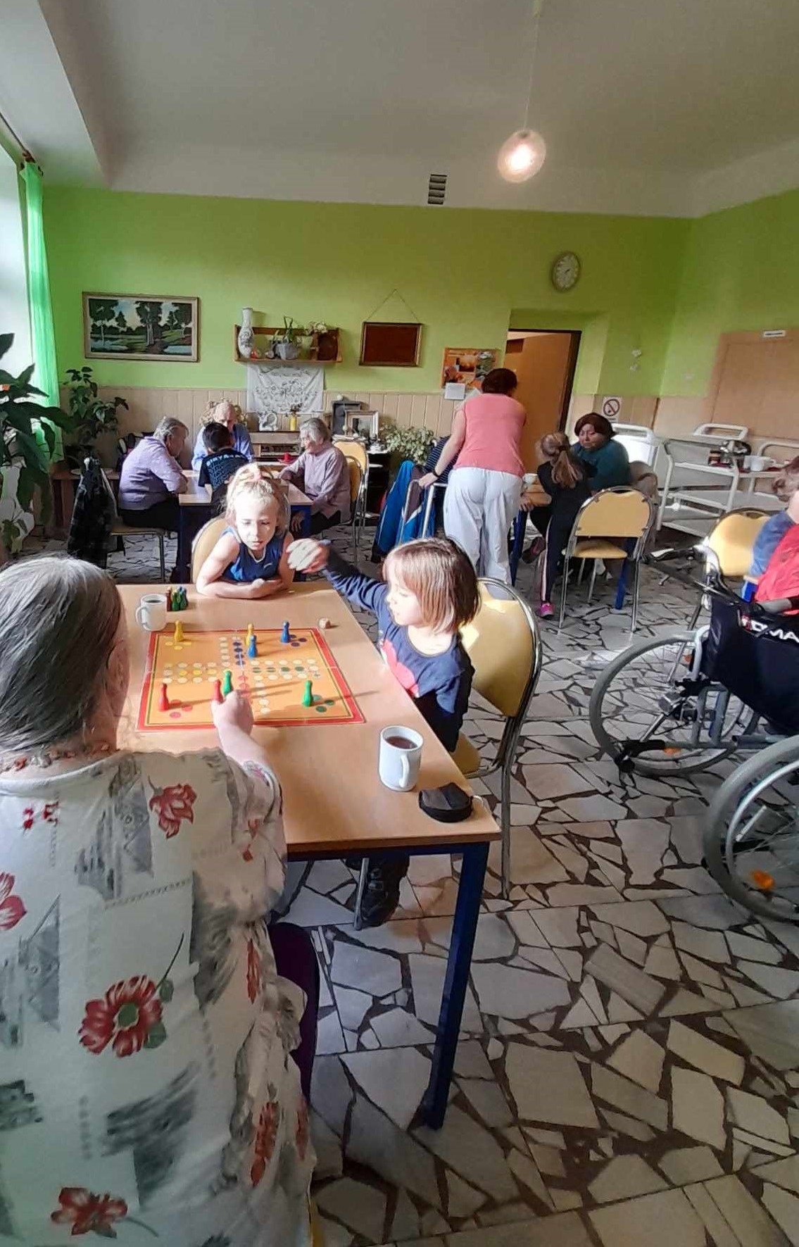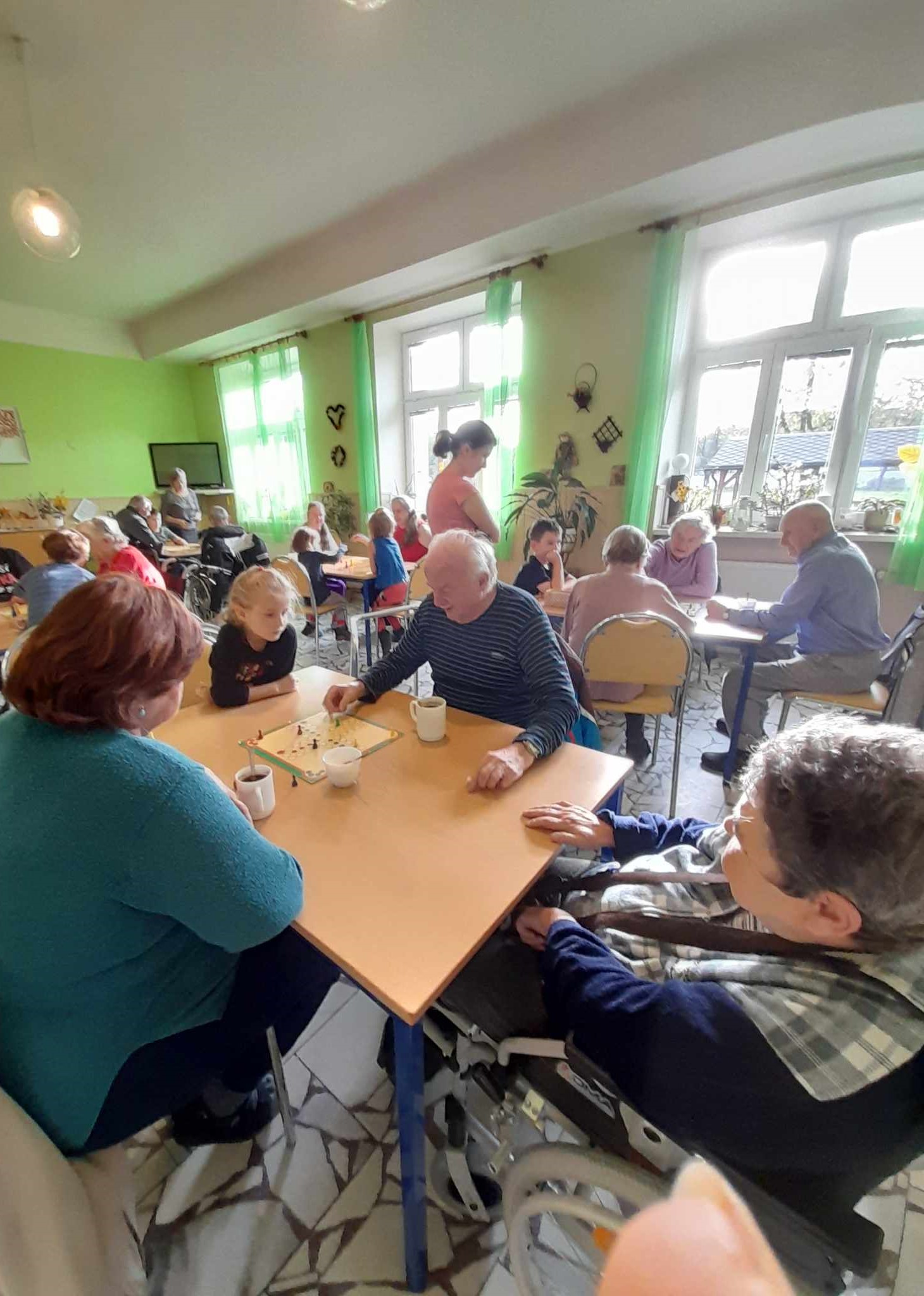 a uživatelky z budovy B2 a B3 a děti ze školní družiny při ZŠ Kobylá nad Vidnavkou. Byly vytvořeny skupiny po čtyřech hráčích, kdy většinou hráli dva uživatelé a dva žáci. Zúčastnění si turnaj užívali, zvládli si zahrát dvě kola. Na konci turnaje byli vyhlášení vítězové, kteří obdrželi diplom a sladkou odměnu. Ale ani ostatní nezůstali zkrátka, každý dostal sladkou odměnu také.