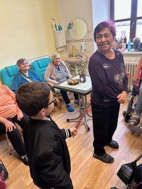 Odpoledne přišly děti ze školní družiny ZŠ Javorník v doprovodu paní učitelky vyšlehat pomlázkou některé naše uživatelky. Jako překvapení také donesly vyrobené jarní ozdoby. Uživatelky a také uživatelé měli velkou radost. Děti si za odměnu vykoledovaly sladkosti.