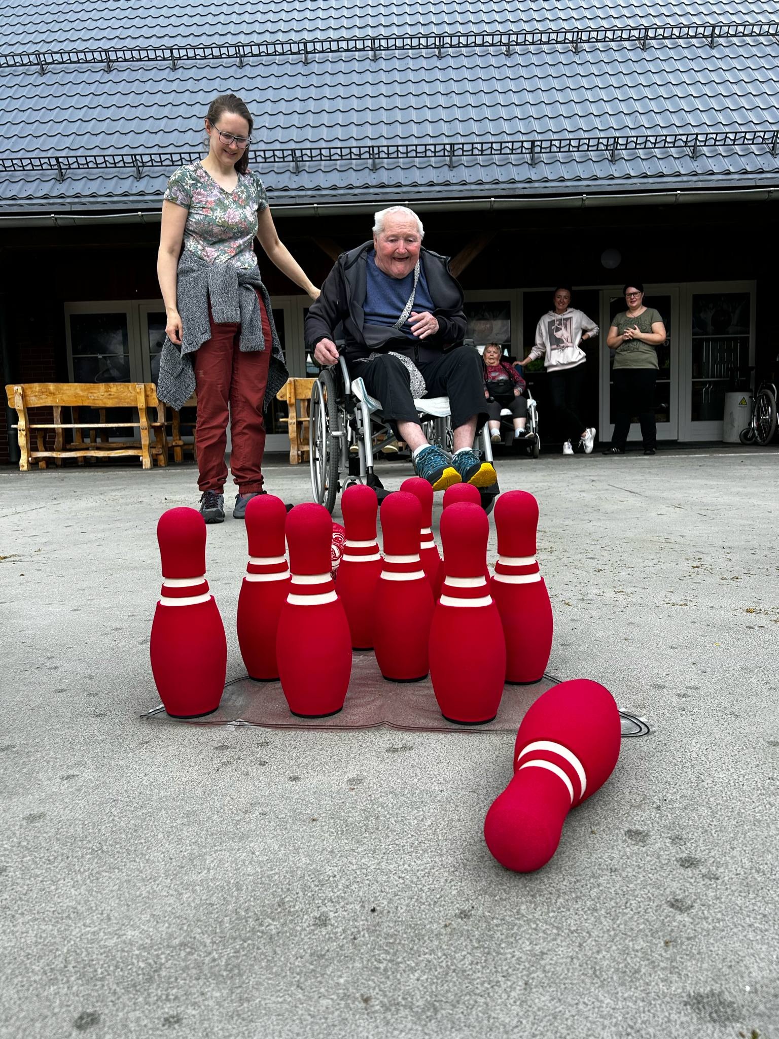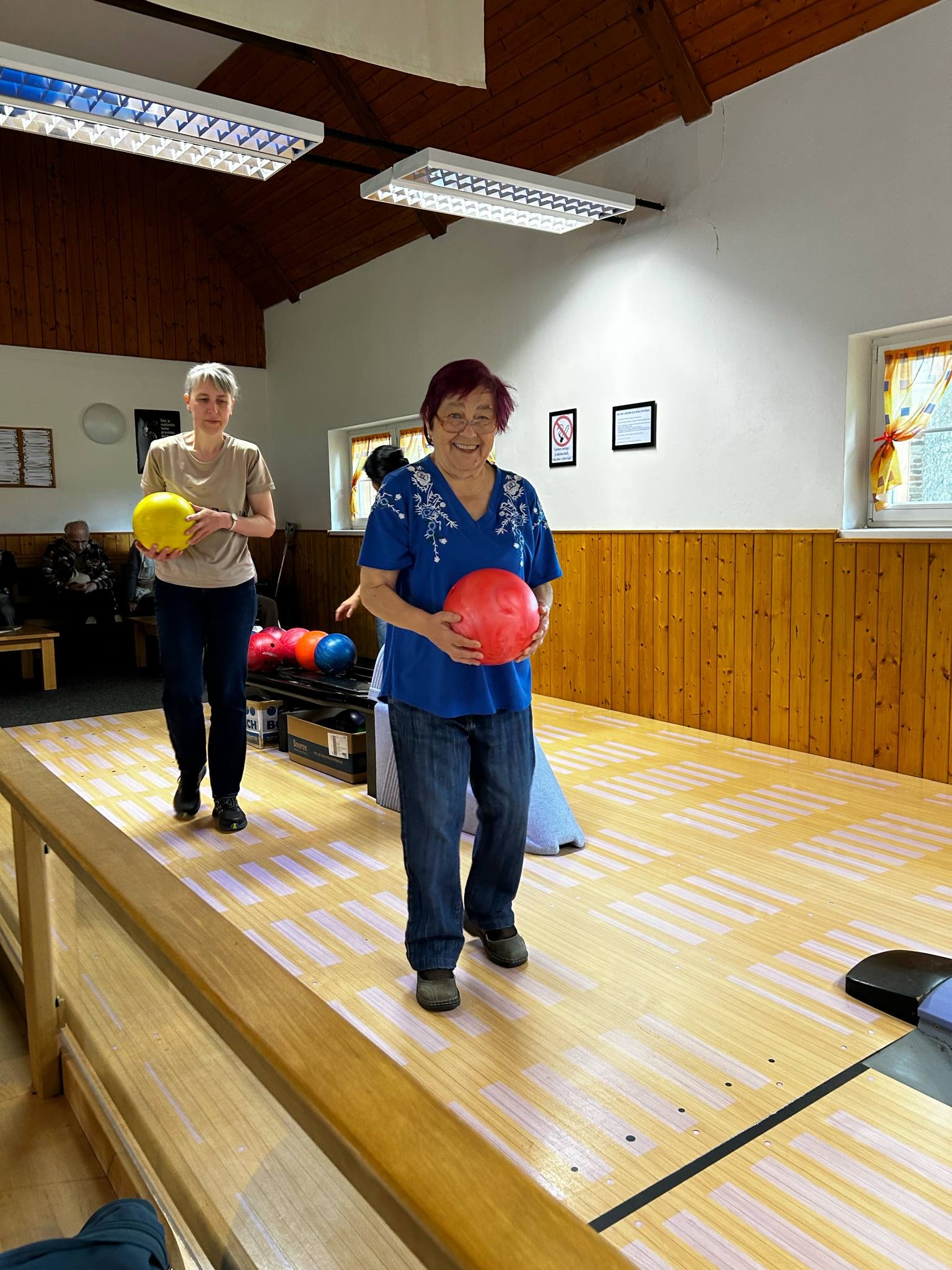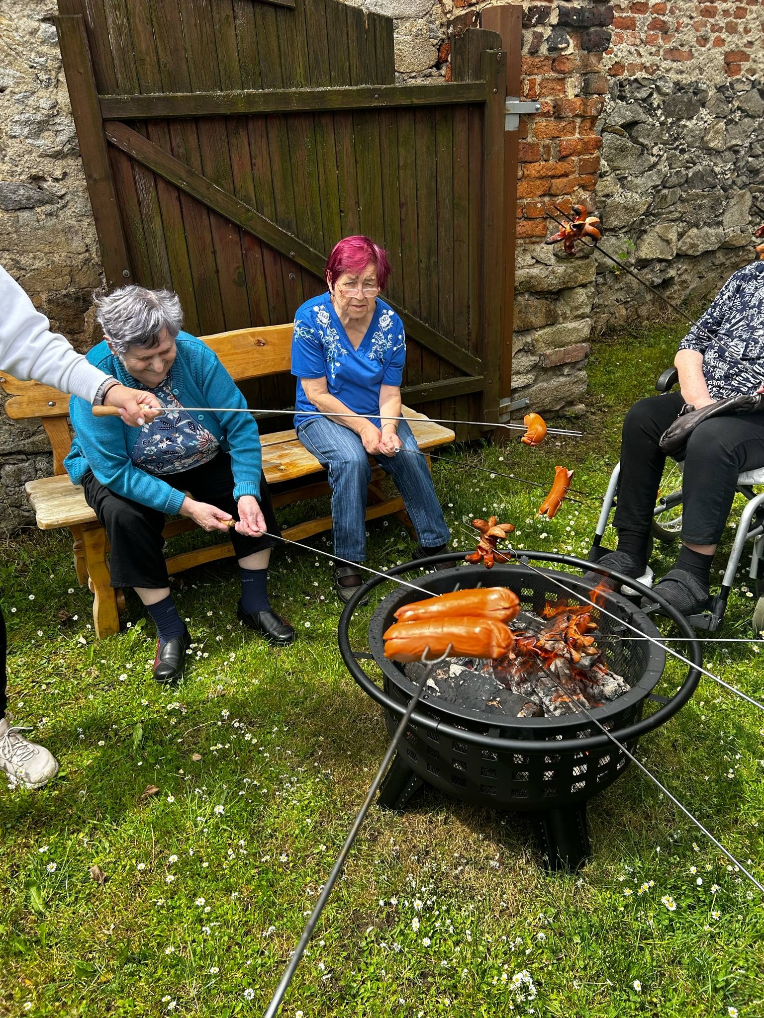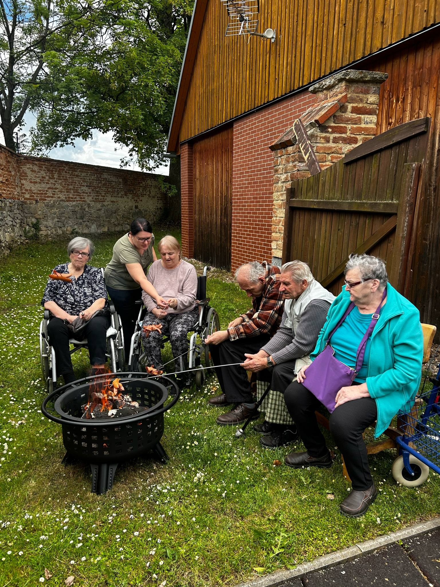 Javorničtí uživatelé si po příjezdu do Bernartic nejdříve dali občerstvení v podobě svačiny a pití, které si každý objednal podle svého výběru. Během posezení vystoupili se svým hudebním programem žáci ZŠ Bernartice. Poté část uživatelů hrála s pracovníky bowling, další si zahráli kuželky venku na nádvoří, malá skupinka uživatelů jela s pracovnicemi na procházku po Bernarticích. Mezitím byl v přenosném ohništi rozdělán oheň a všichni uživatelé měli možnost si opékat špekáčky. Těm, kteří to nezvládli, opekli špekáčky pracovnici.