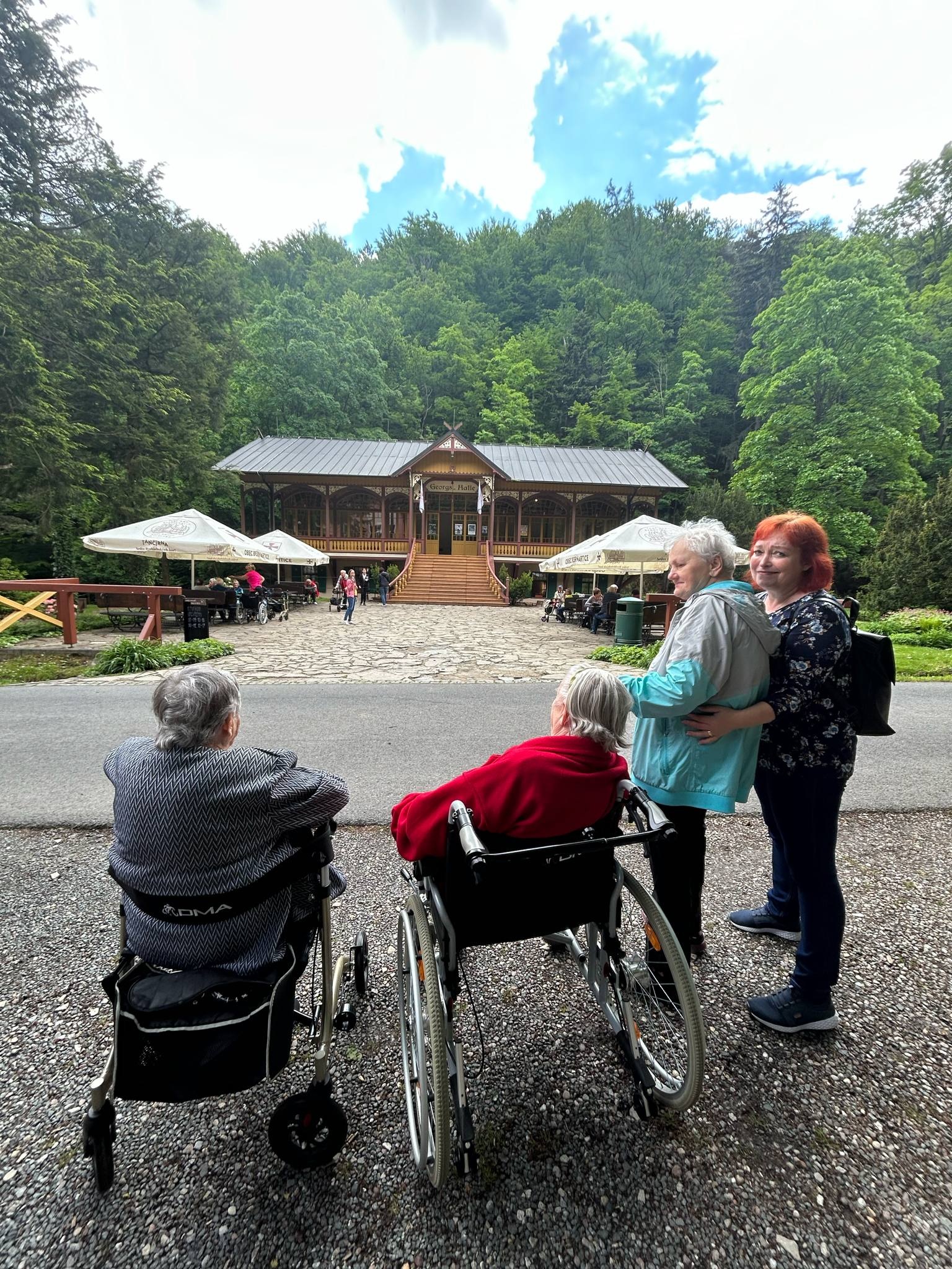 Uživatelé z Kobylé nad Vidnavkou v doprovodu pracovníků se téhož dne vypravili mikrobusem a služebním automobilem na výlet do Račího údolí na Tančírnu, kde navštívili místní kavárnu, ve které si vybrali nápoje a zákusky. Někteří uživatelé poseděli uvnitř v salonku a další využili krásného počasí venku. Uživatelé se také v doprovodu pracovnic prošli v okolí Tančírny a obdivovali krásnou přírodu a samotnou stavbu.