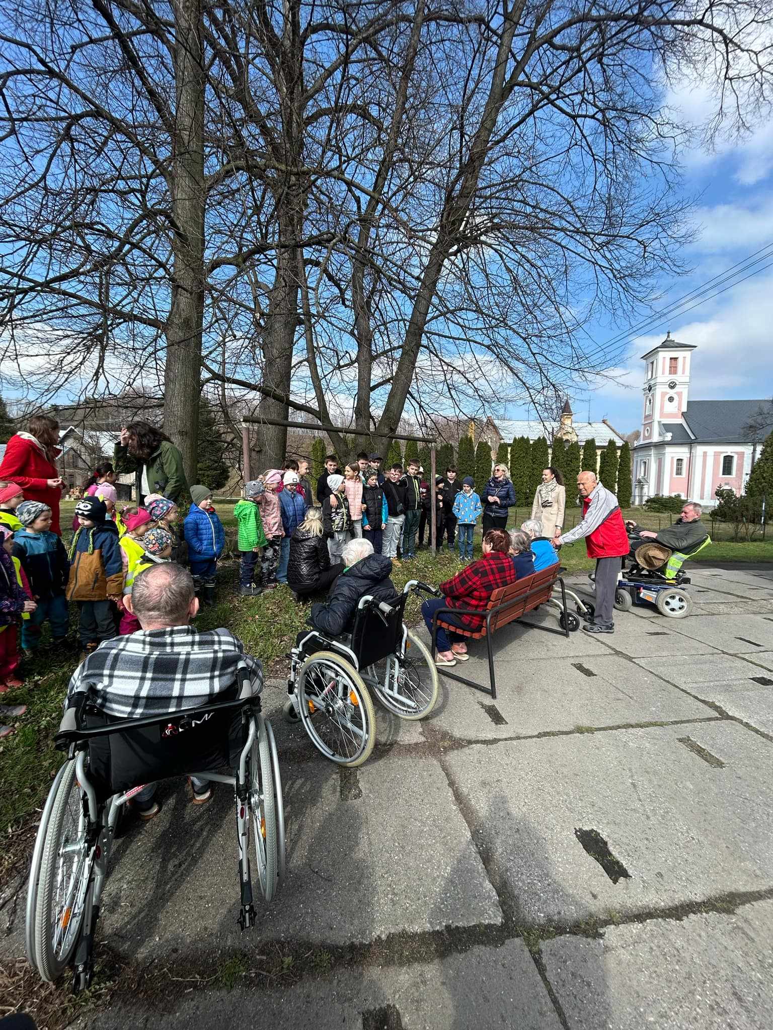 Uživatelé z budovy B2 a B3 se dnes společně s dětmi z MŠ a ZŠ Kobylá nad Vidnavkou zúčastnili vynášení Morany. Akce se konala venku za terasou domova, kde jsme společně s dětmi vyhodili Moranu do potůčku, abychom zahnali zimu. Dětí také zazpívaly několik lidových písní, ke zpěvu se přidali i uživatelé. Akce se vydařila, uživatelé byli veselí a spokojení. Potěšila je návštěva dětí.