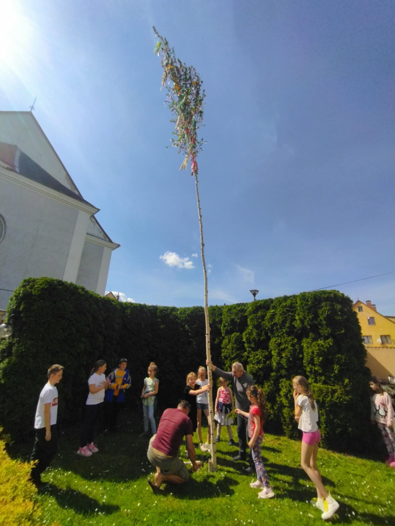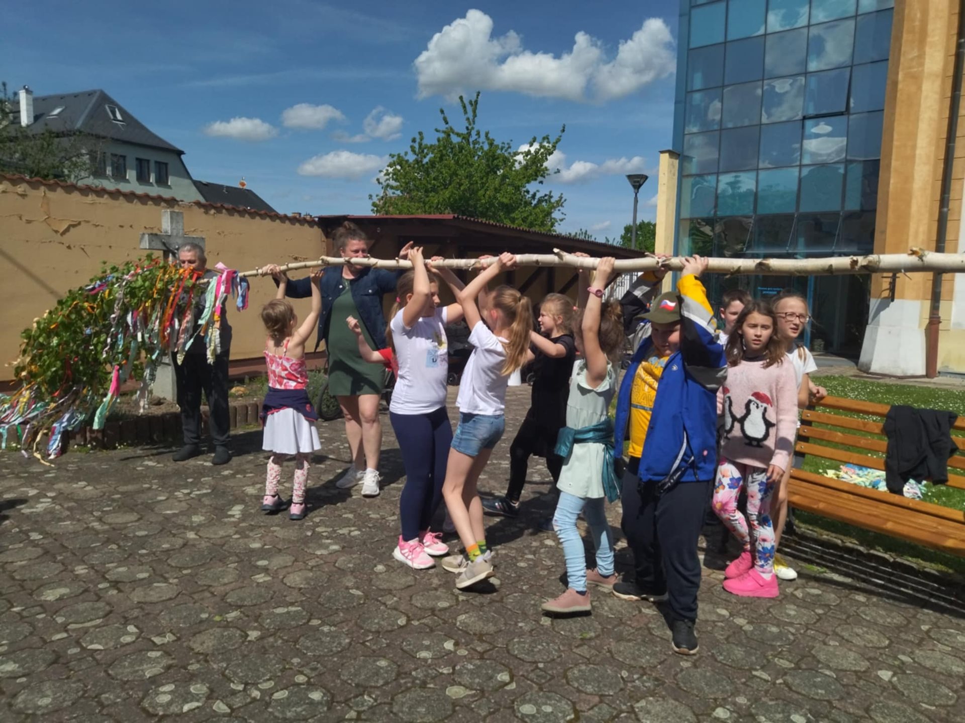 Středa 30. 4. se na všech třech pracovištích domova nesla v duchu stavění májek. Kromě toho si uživatelé s pracovníky na pracovištích v Kobylé nad Vidnavkou zpestřili společný čas čarodějnickým rejem. Někteří uživatelé a uživatelky se podle svého přání oblékli do kostýmů čarodějů a čarodějnic. Na zámku se soutěžilo ve dvou disciplínách - párování ponožek a hodu na cíl. Na malé budově zase uživatelky s pracovnicemi připravovaly různé lektvary a čarodějnické pochutiny. Poté všichni společně navazovali mašle na připravenou májku. V Javorníku přišly uživatele navštívit děti ze školní družiny a pomohly jim nazdobit májku. Pro vytvoření příjemné atmosféry hrála hudba z rádia a uživatelé měli možnost se občerstvit kávou.